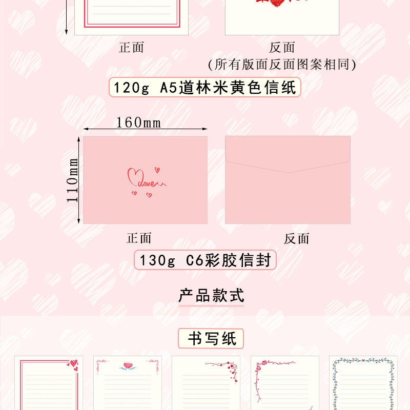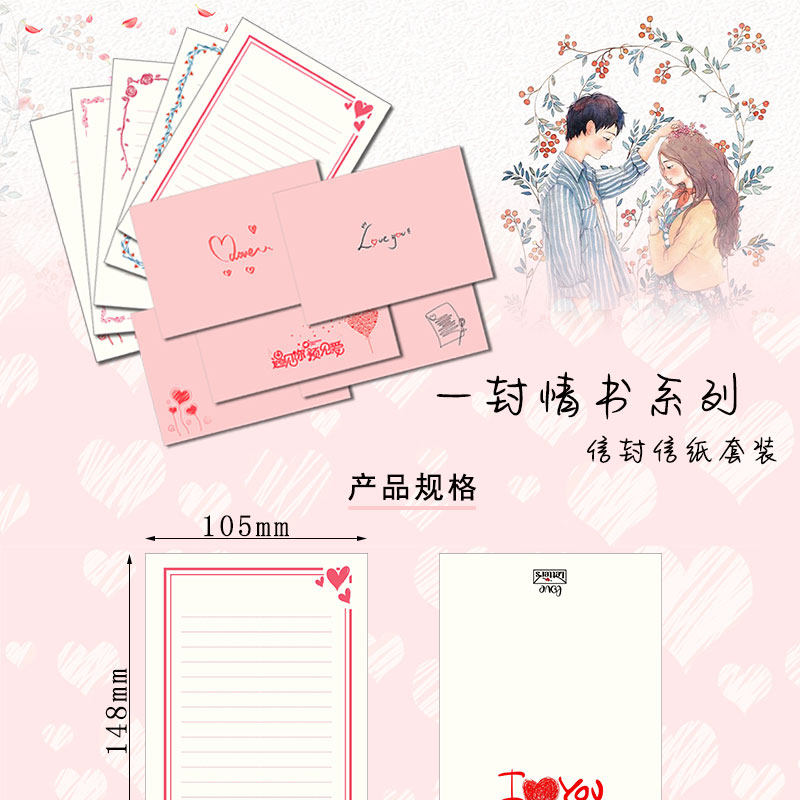 a5纸定制情人节520表白情书信纸信封套装彩色打印纸一封情书系列