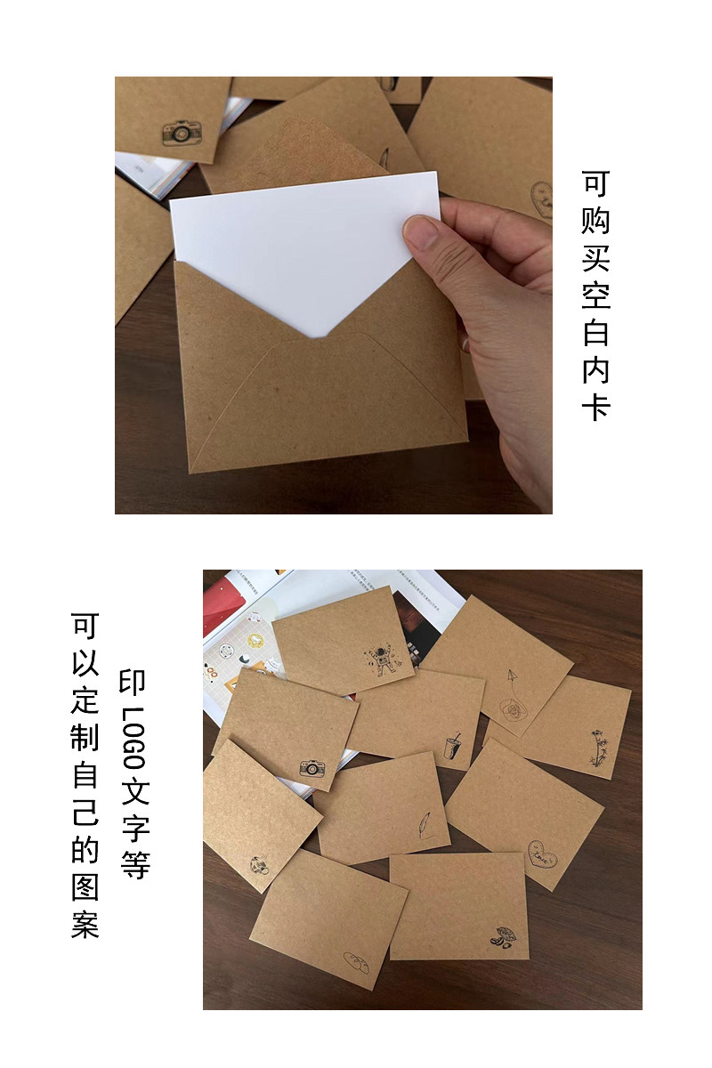 可印文字LOGO复古文艺简约爱心欧式精致小号牛皮三角信封袋